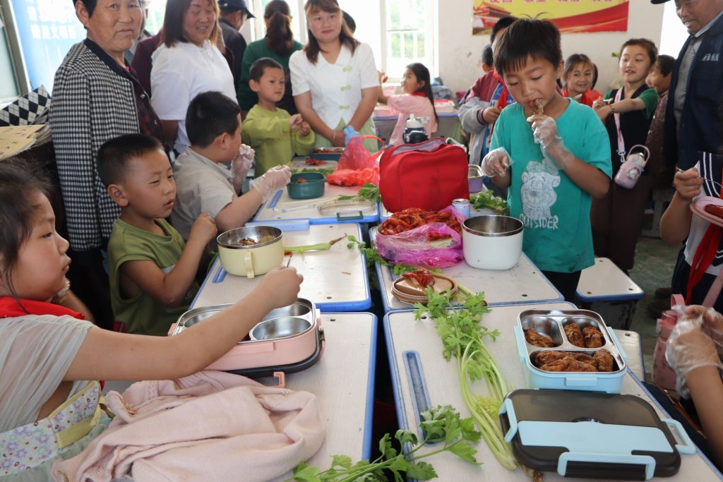 ~ 当天早晨,学生们化身小厨师,各显神通。他们在父母的指导下,挑选食材,烹饪佳肴,带来学校。学生互相品尝美食,分享感受。