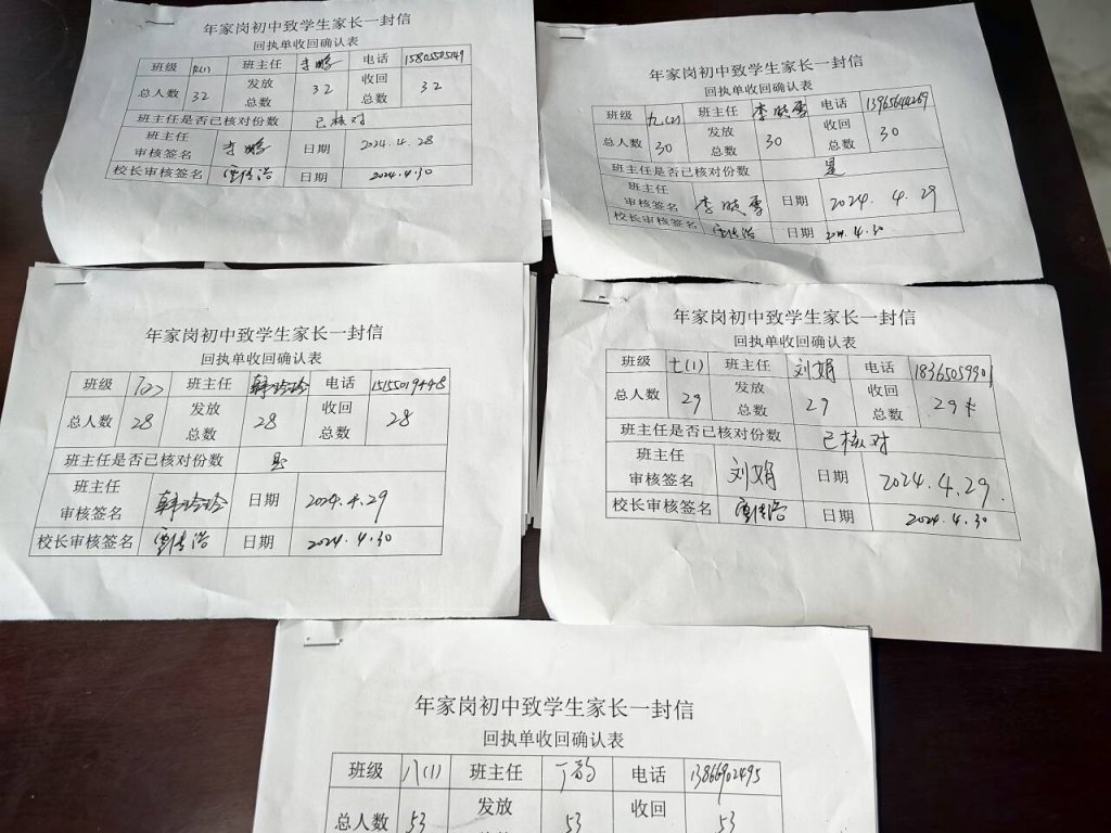 二是发放防溺水致家长一封信。4月26日,学校已将《防溺水致家长一封信》发放至所有学生家长或监护人手中,做到四个“百分百”:100%发放到家长手中、100%张贴在家中醒目位置、100%回收家长的签字承诺,100%的回执真实有效。回执以班级为单位整理,班主任签字,由学校存档备查。