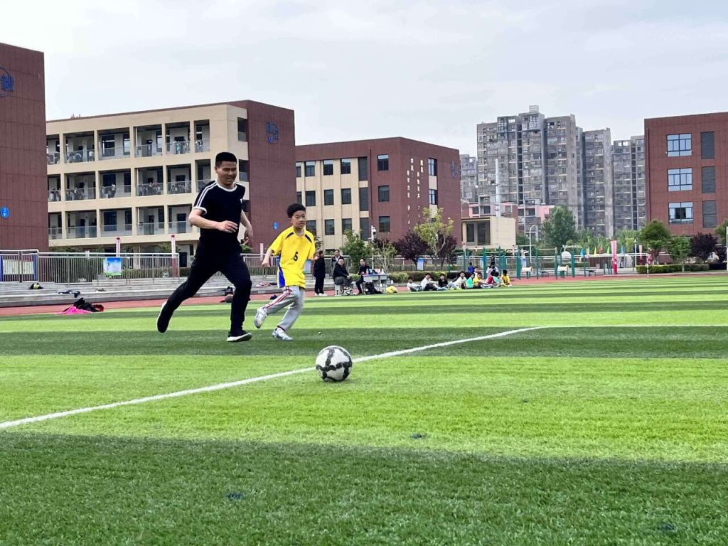 ~ 此次活动最后,实验小学教育集团党总支书记陈恩源组织并带领老师队与“班超”联赛冠军队展开了一场别开生面的师生足球友谊赛。在东兴路小学足球场上,一场学生足球队与老师足球队展开了激烈而有趣的较量,把本次足球联赛推向了高潮。