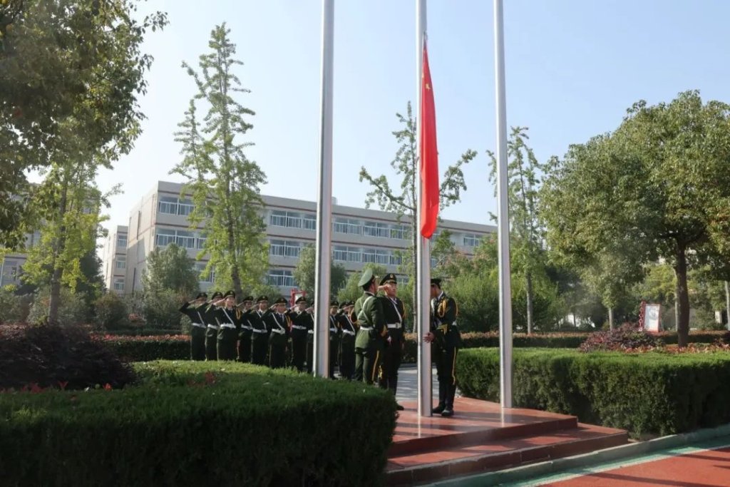 ~ 上午10点,升旗仪式开始,学校国旗护卫队迈着整齐划一、铿锵有力的步伐,护卫着鲜艳的五星红旗走向旗台,伴随着雄壮的国歌,五星红旗冉冉升起,迎风飘扬,全体师生庄严肃立,向国旗行注目礼,高唱国歌,升旗仪式庄严肃穆 ,爱国情怀再一次激昂。
