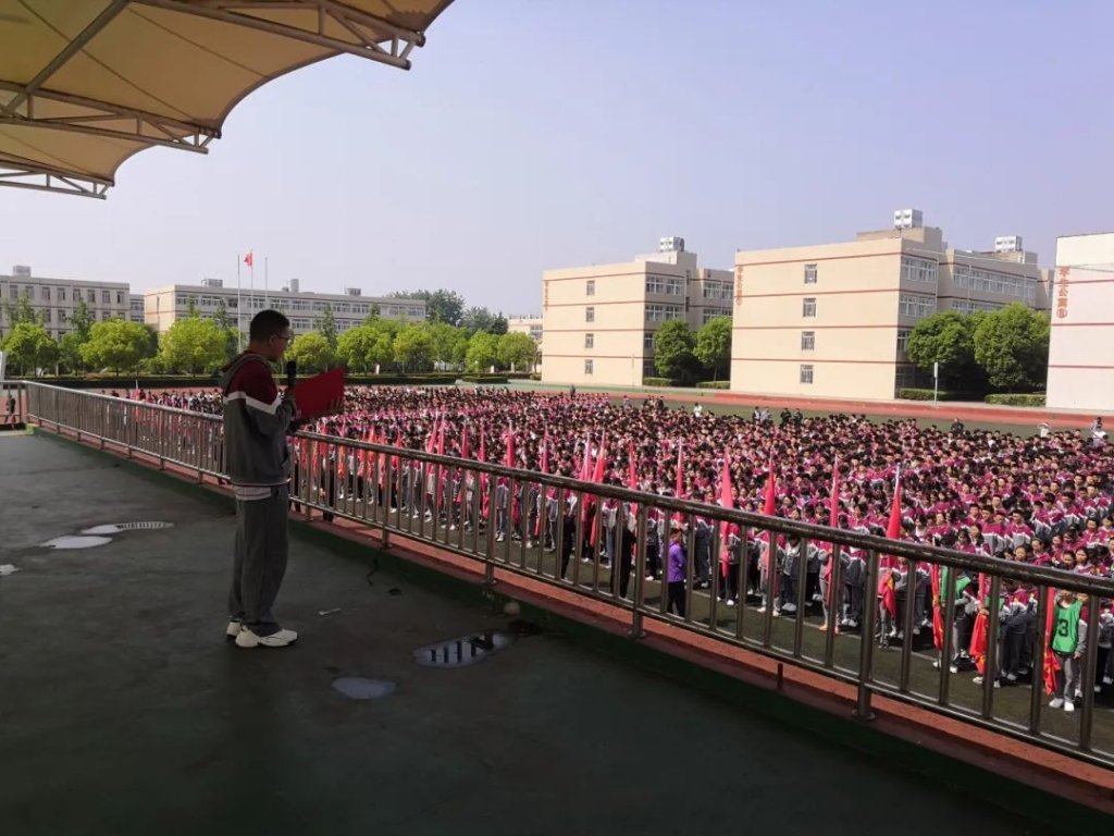 ~ 升旗仪式后,学生代表张恒伟同学在国旗下演讲,题目为《弘扬五四精神  激扬青春梦想》。他带领师生重温历史,聆听习近平总书记对广大青年殷殷嘱托,争做有理想、敢担当、能吃苦、肯奋斗的新时代好青年。激励同学们以昂扬姿态接过历史接力棒,以青春奋斗之名书写新时代青春答卷。