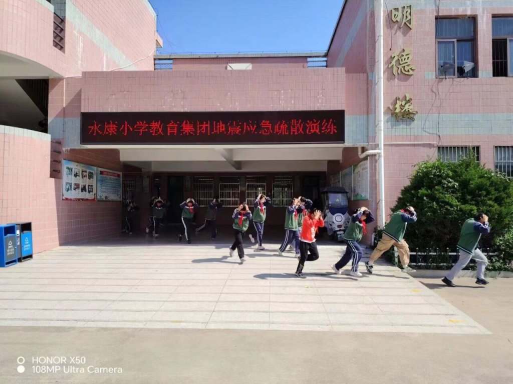~ 上午9点10分,永康小学教育集团一小校区、明德校区及幼儿园三个校区同时进行防震减灾疏散演练,随着警报声响起,学生迅速蹲下,躲在课桌下,并用书包或书本保护头部。约2分钟后,一次长哨声响起,全体学生在老师们的引导下有序撤离到操场指定安全区域。各班级迅速清点学生人数,确保每一名学生安全撤离,整场演练达到了预期的效果。