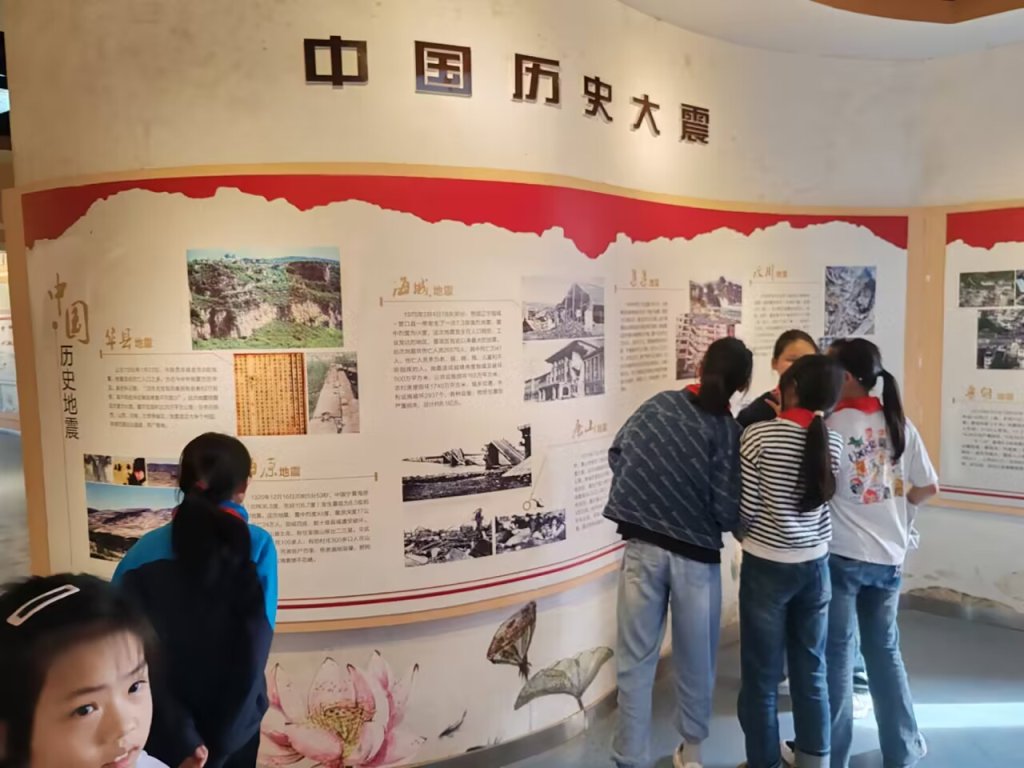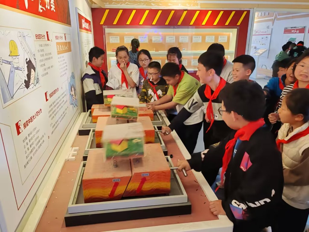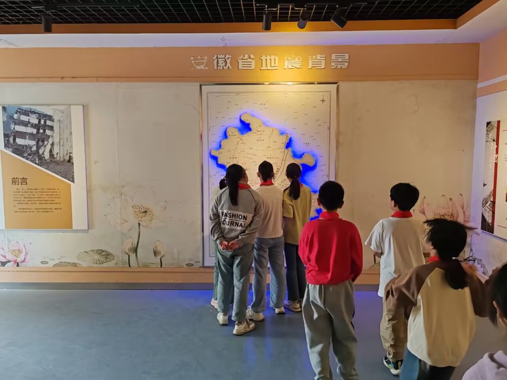 ~ 在地震科普馆里,讲解员为孩子们详细介绍了定远县的地质特点以及历史上的地质灾害等知识,再次强调了地震发生时应选择哪里避险,如何有效逃生,孩子们心中的疑惑在讲解人员的解答中找到了科学的答案。在讲解员的带领下,学生们依次参观了地震大纪年、地震模拟断层、地震带来的危害图。