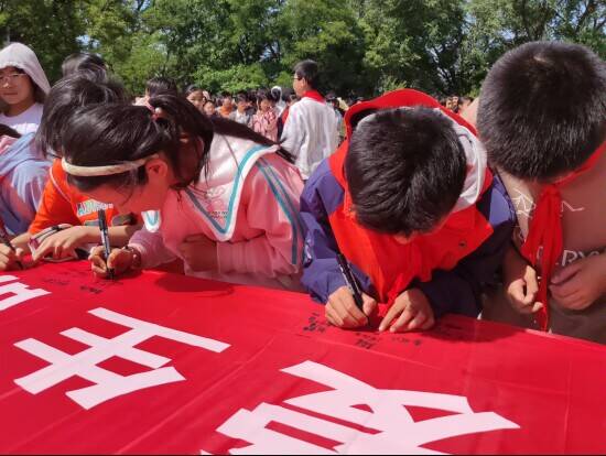 宣誓完毕后,学生们纷纷在横幅上签下自己的名字,表达了对预防溺水的决心。学校还将横幅悬挂在校园显眼位置,以时刻提醒学生们注意安全。