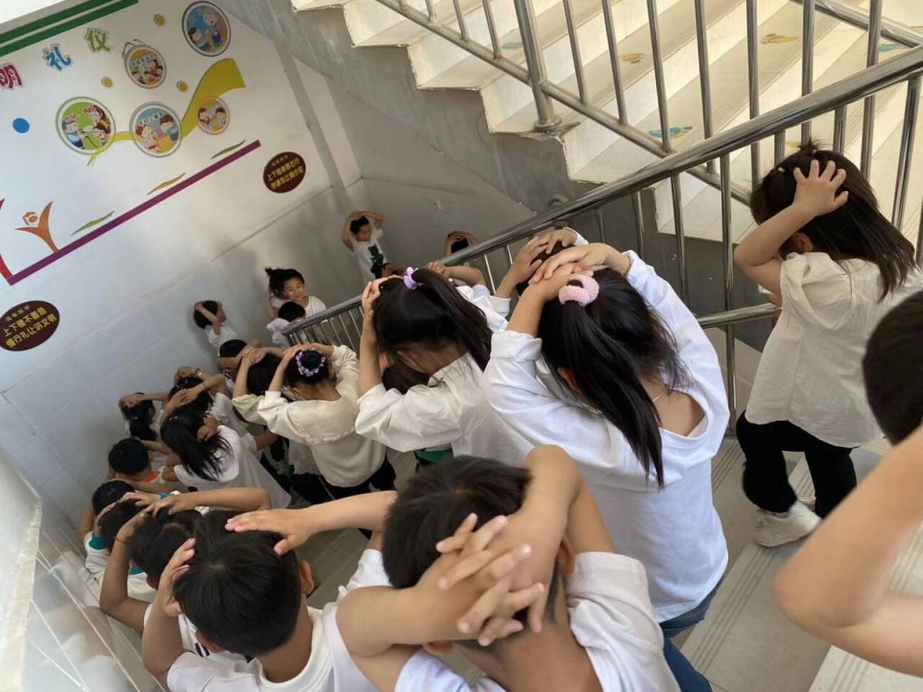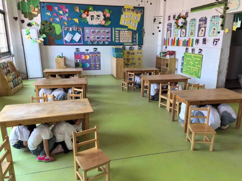 ~ 第一次警报铃声响起,防震应急疏散演练正式开始!全园师幼立即停止活动,以最快速度躲避到安全区域,迅速抱头、蜷曲身体,降低身体重心,躲在墙角等三角区域, 保护头部和眼睛,并远离窗户。