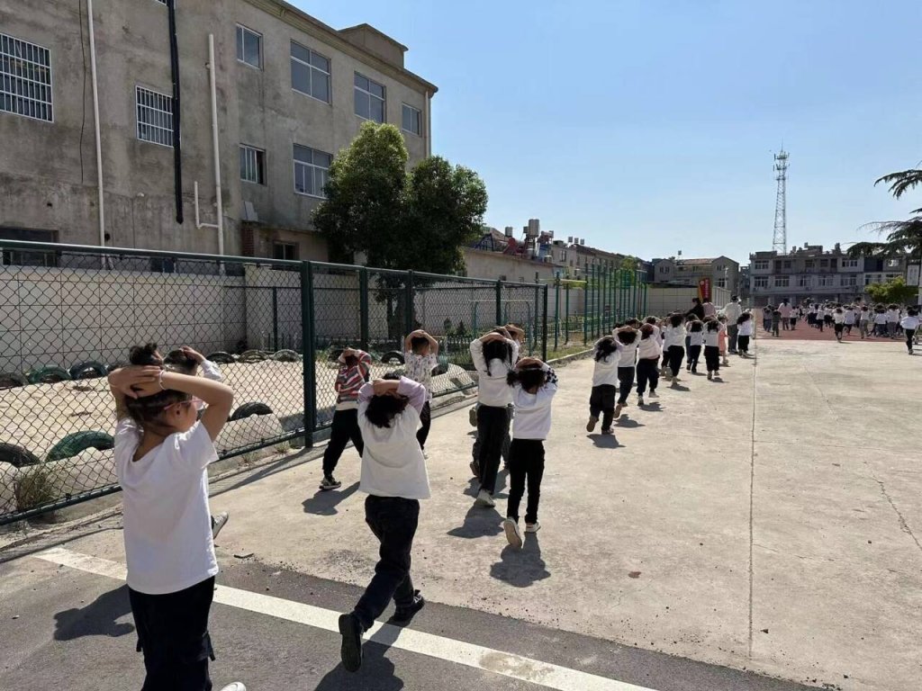 ~ 随着第二声警报声响起,幼儿在老师的带领下弯腰、护头,迅速且有序沿着指定疏散路线撤离到安全区域,老师们按照各自职责,保护幼儿,检查是否有掉队的孩子,确保每位幼儿安全撤离。当撤离到指定安全地点后,各班老师立刻清点人数,检查是否有受伤幼儿并向总指挥汇报人数,确保所有师幼无—疏漏。