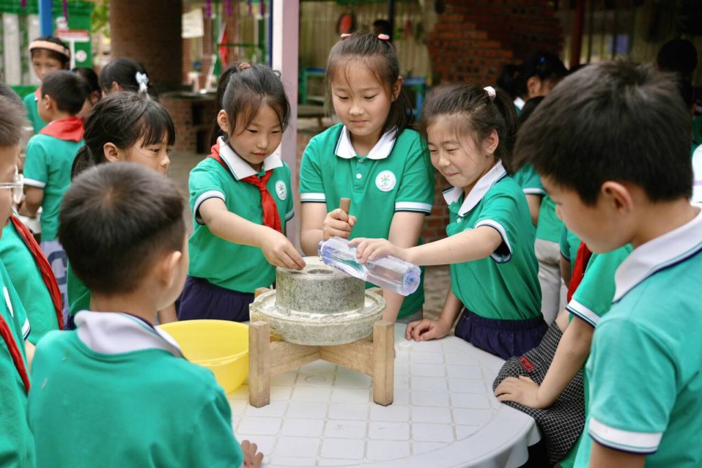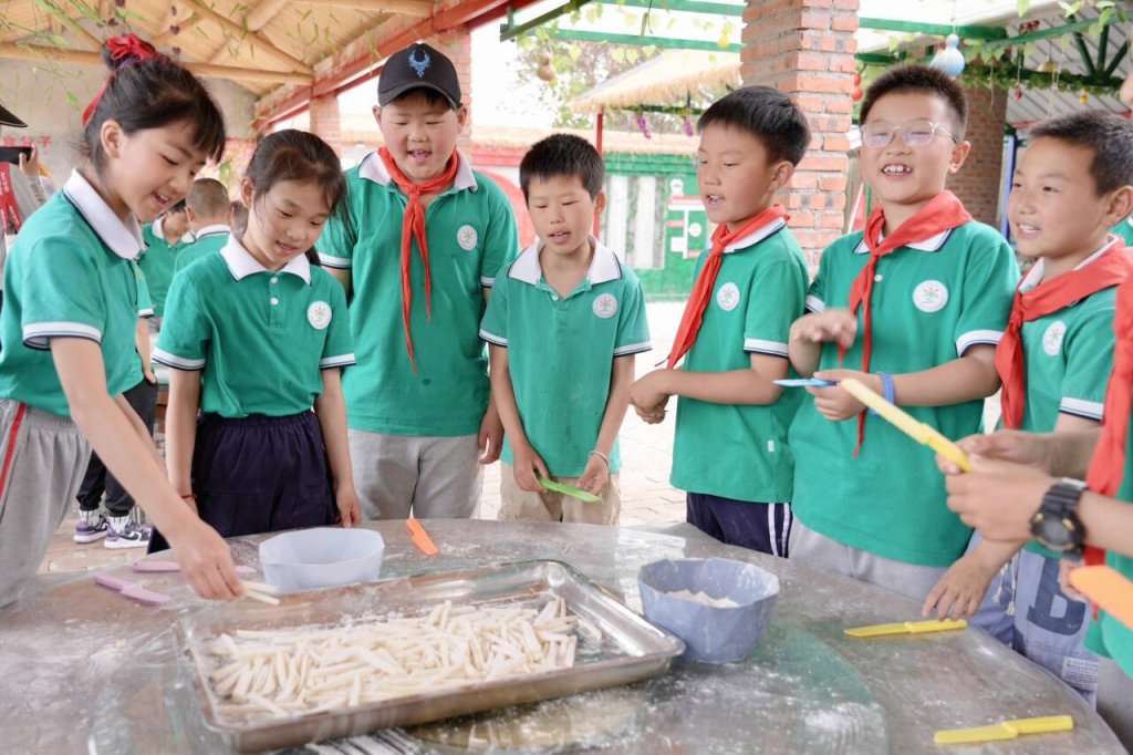 ~ 仪式结束后,同学们分别参与了炸薯条、磨豆浆、拔河等有趣的研学活动。学生们积极参与手工制作,锻炼动手能力,体验传统文化,感受历史的魅力。学生们全身心地投入到每一个环节中,展现出浓厚的兴趣和高度的参与热情。