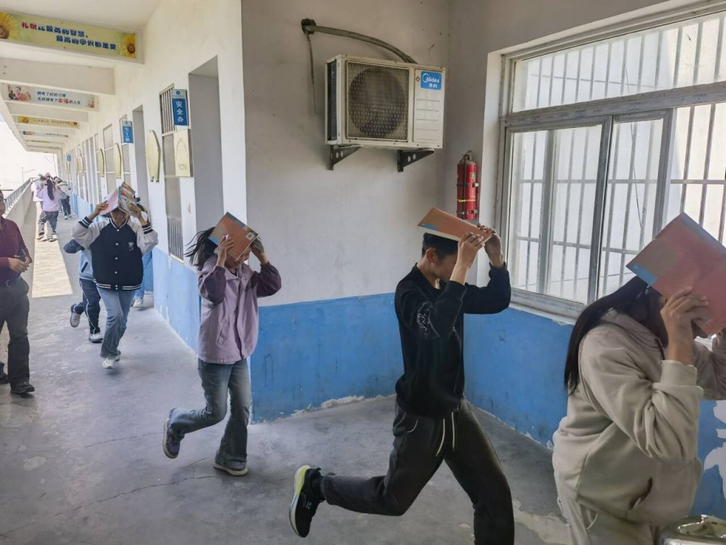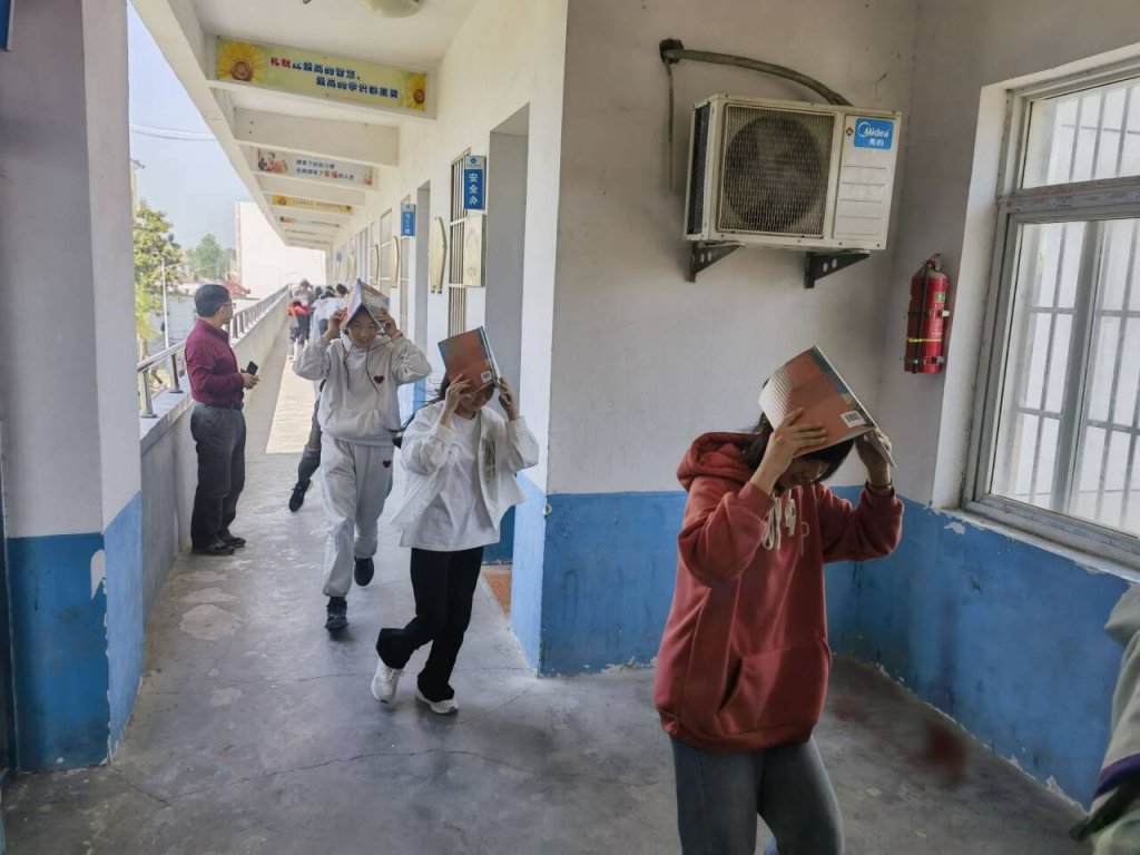 ~ 上午9点40分,随着警报声的响起,演练正式开始。师生们迅速反应,按照预定的逃生路线,有序地从教室撤离到广场安全区域。在撤离过程中,师生们用书本、书包等物品保护头部,弯腰低姿前行,避免了拥挤和踩踏事故的发生。