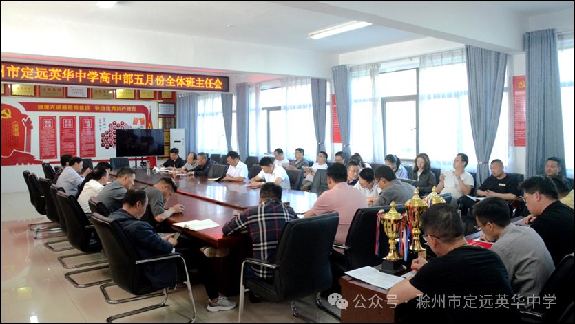 ~ 五月,绿意盎然,生机勃勃,是万物生长的季节。为进一步加强班主任队伍建设,充分发挥班主任在学校教育和管理工作中的重要作用,切实提升德育工作和班级管理的实效性,2024年5月8日下午,滁州市定远英华中学高中部全体班主任工作会议在二楼党员活动室举行。