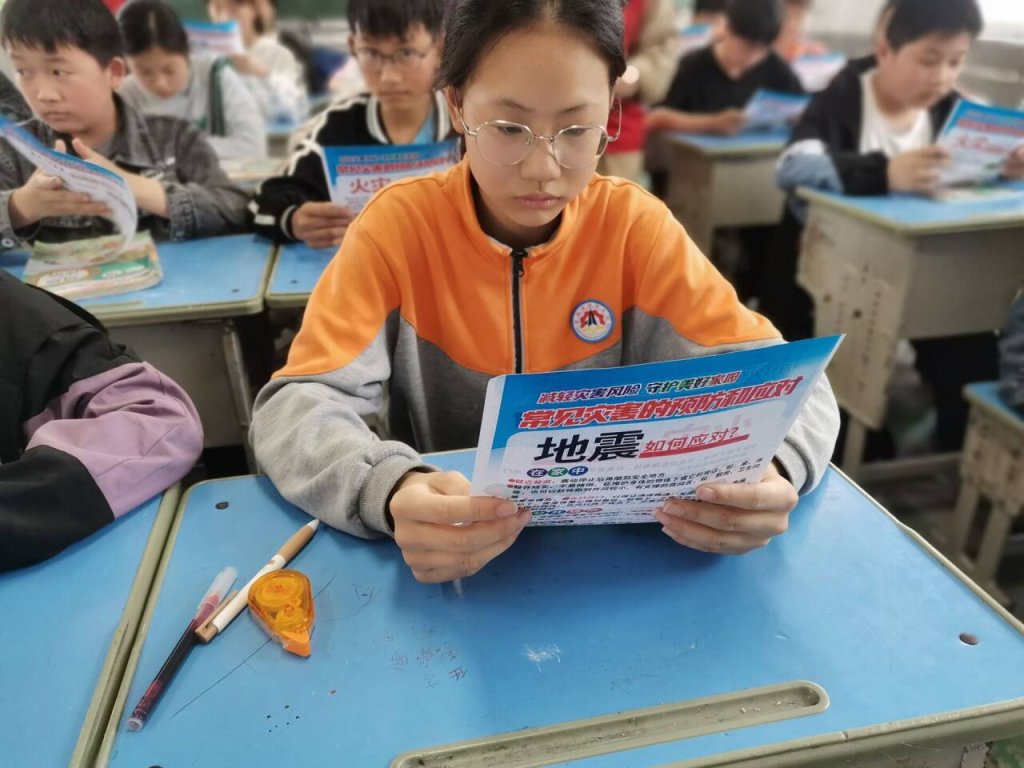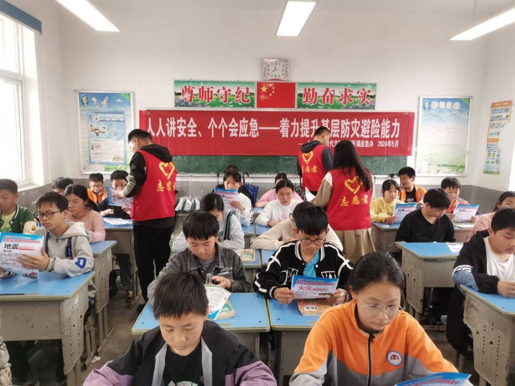 ~ 演练结束,朱湾镇新时代文明实践所志愿者到班级开展“人人讲安全,个个会应急”知识讲座,发放如何应对地震、火灾等危险情况宣传材料。