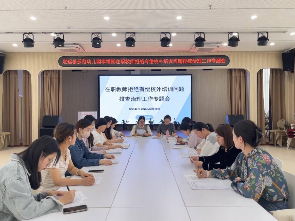~ 会议针对在职教师的有偿校外培训问题进行了警示教育和深入分析,并制定了排查自纠计划。全体教职工签署了承诺书,承诺将严格遵守职业道德,专注于幼儿园教育工作。教师们纷纷表示将提升自身专业素养,为幼儿的成长贡献力量。