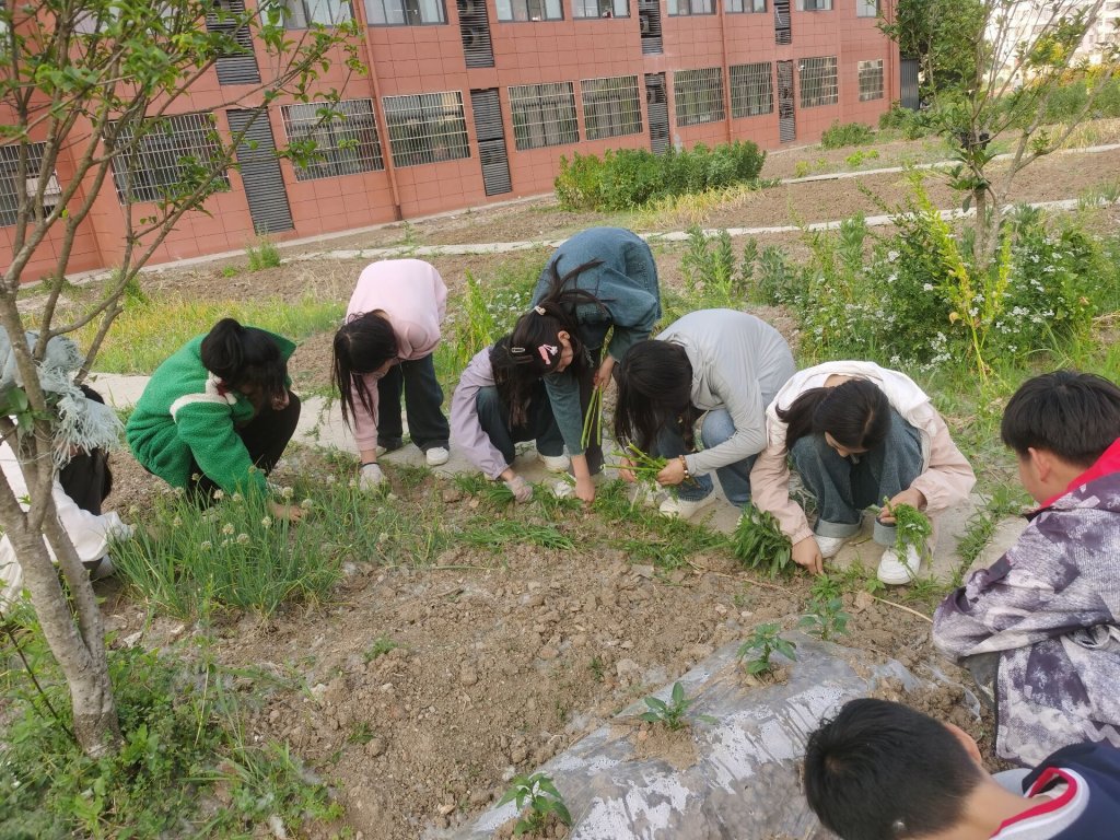 ~ 他们走进劳动基地,拔草、翻地、采摘时令果实。他们走进花坛,除草甚至学着修剪杂草树苗,在校园的每个角落留下繁忙的劳动景象。