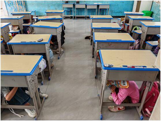 ~ 随着警报声响起,全校师生按照既定的“防震应急疏散演练预案”进行疏散演练。同学们在老师的指导下,头顶书本迅速撤离到操场上。整个过程秩序井然,达到了预期效果。
