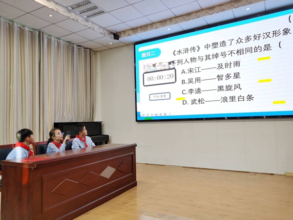 ~ 竞赛活动在学校报告厅举行,在嘹亮的国歌声中拉开帷幕,教务主任周付春讲话并宣布活动开始。之后,各班班主任现场大屏幕抽取竞赛试题号码,按 1—6 年级顺序依次进行比赛。竞赛题目包罗万象,精彩纷呈。有猜字谜、猜歌名、猜古诗、脑筋急转弯、猜数字、数学王国、图片找茬、汉字找茬、识字高手、语句积累、妙语连珠、句式变换等。台上紧张激烈,台下欢声笑语。小学部的师生度过了一个难忘的下午。