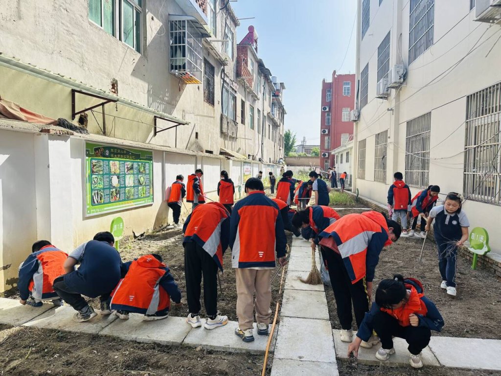 同学们在班主任的组织下,以高昂的情绪和饱满的热情积极投入到活动中。同学们分工合作,面对各班基地中杂草、垃圾,同学们埋头苦干,个个奋勇争先,发扬不怕脏、不怕苦、不怕累的劳动精神,拔的拔,搬的搬,干劲十足,整个劳动实践基地呈现一幅热火朝天的劳动场面。他们挥洒着汗水,脸上洋溢着笑容,体验着劳动的乐趣,书香校园映衬着他们可爱的身影,形成了一道道靓丽的风景线。