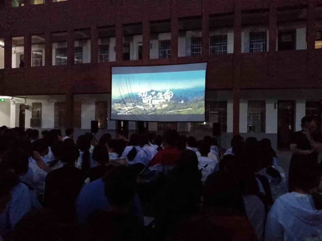 ~ 5月14日晚,定远县朱湾初中组织全体师生在教学楼前广场观看电影《动听的生命》。