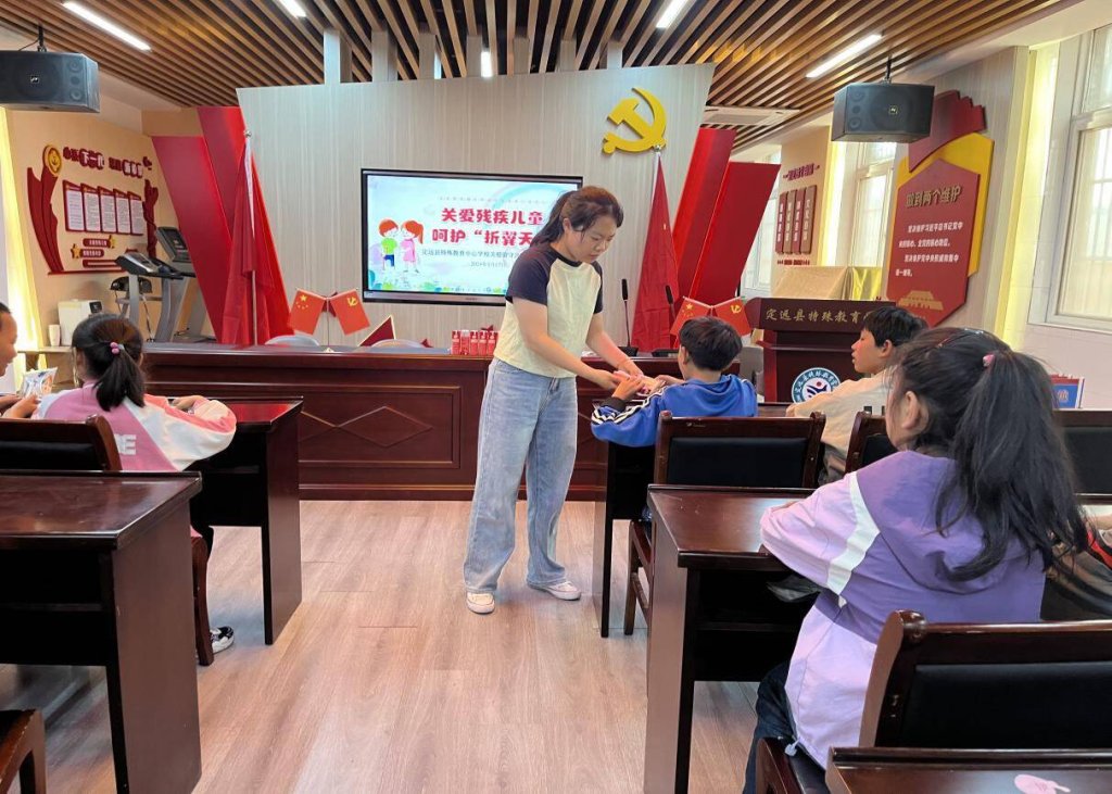 ~ 在第三四十个助残日到来之际,为推进扶残助残文明实践,营造良好的校园文明风尚,不断促进残疾留守儿童共享美好生活,5月17日定远县特殊教育中心学校在综合活动室举行了以“关爱残疾儿童 呵护折翼天使”为主题的关爱残疾留守儿童活动。