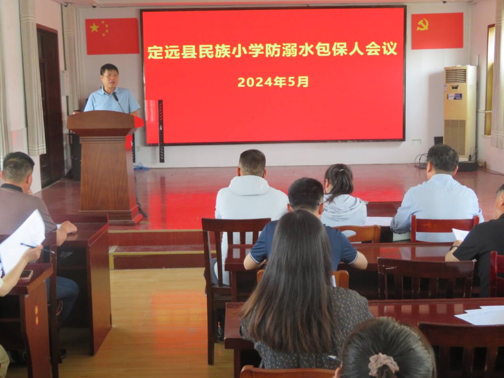 ~ 5月17日,定远县民族小学召开了防溺水包保人会议,全体行政人员和班主任参加。