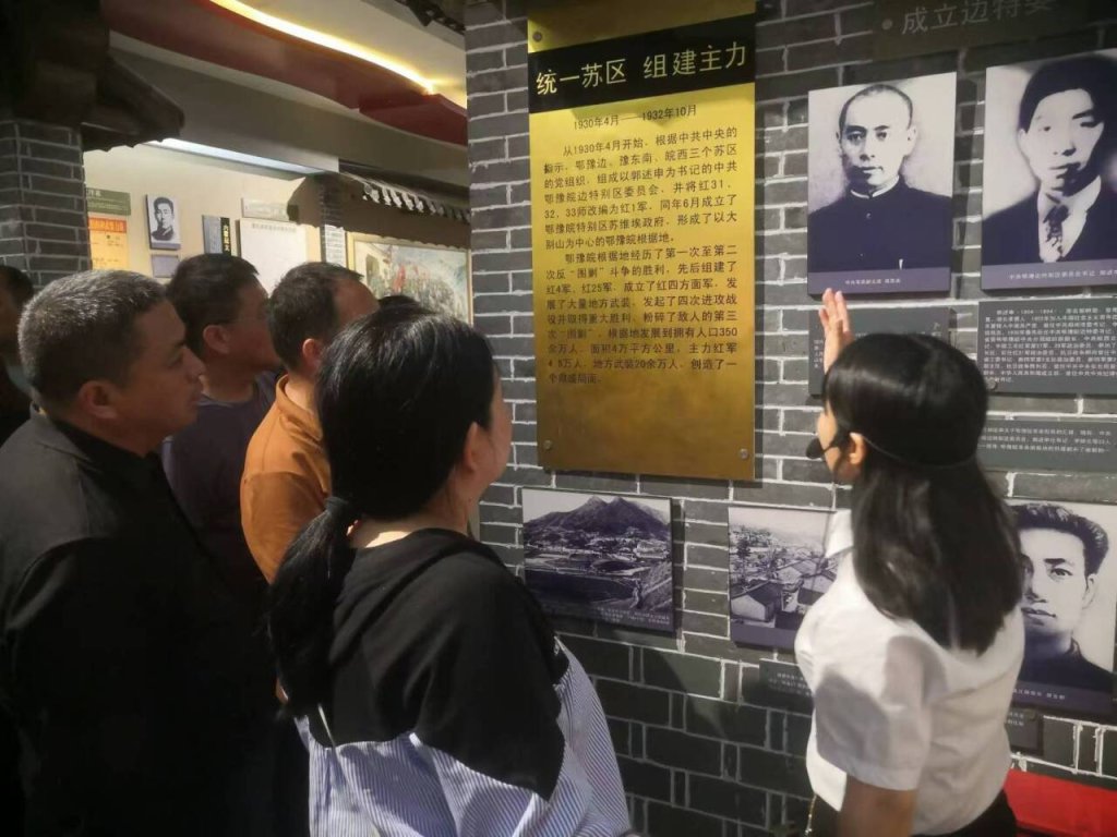 ~ 随后,大家参观了金寨县革命博物馆,在讲解员的带领下依次参观了革命史厅、将军展厅、洪学智将军生平事迹展厅、金寨名人厅、烈士厅等。一份份厚重的文件史料、一件件珍贵的革命文物,浸染着大别山这片红色土地,党员们深刻感悟,革命前辈们为了民族独立和人民解放不畏千难万险、不懈浴血奋斗、付出巨大的牺牲,生动诠释了金寨人民坚守信念、胸怀全局、团结奋进的红色革命精神。