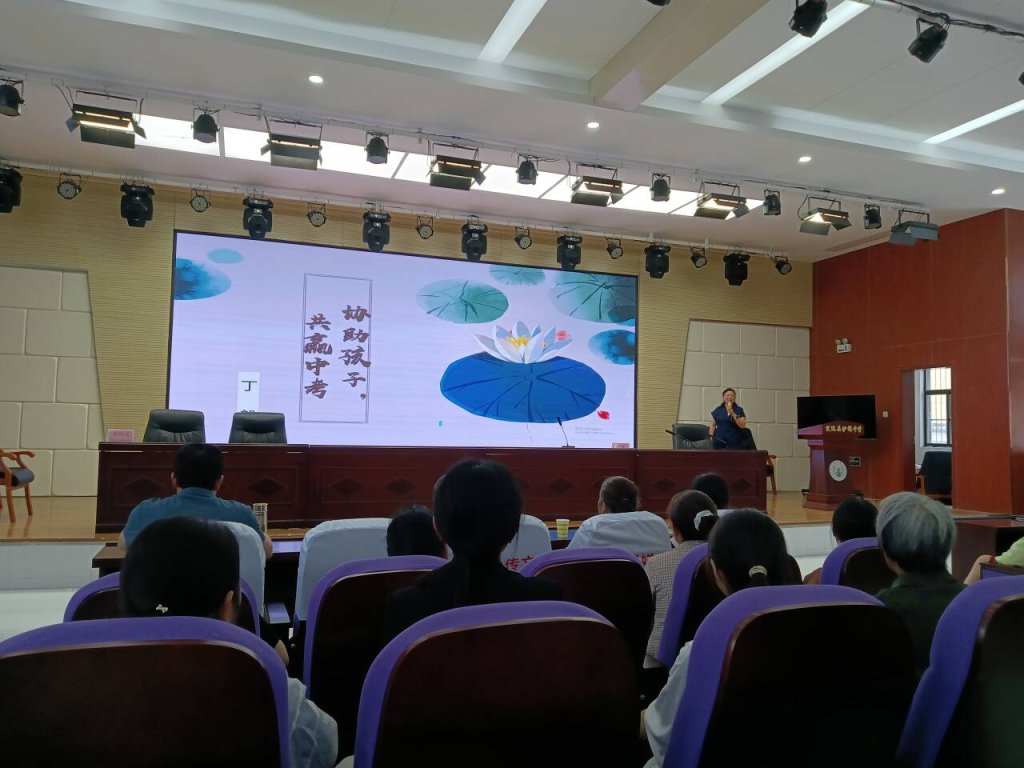 ~ 会上,学校党委副书记、校长韦凤娣首先向与会的家长表示热烈欢迎,并介绍了学校近年来发展概况及所取得的业绩,希望在梦想与责任的双向奔赴中再创佳绩!其次,年级主任也就近期的教育教学工作及模考情况作了总结汇报,并就防溺水安全教育工作进行了详细指导和部署,让家长时刻关注孩子的身心健康和安全教育。随后,师生家长们一起聆听了滁州市心理咨询师丁毅老师的精彩讲座《协助孩子,共赢中考》,丁老师分别从孩子成长过程中的心理变化、家长心理调整、家庭氛围营造以及面对升学压力的策略四个方面,结合实例,深入浅出,分析讲解,并指导家长要关注孩子身心健康,培养孩子兴趣爱好,与孩子建立良好的亲子关系,鼓励孩子全面发展。在师生家长的互动中,大家激情高昂,更是点燃了全场的气氛,帮助学生缓解了考前压力,树立了自信心。丁老师的讲座赢得了家长们的一致好评。