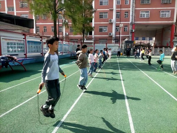 ~ 校园韵律操和广播操作为基础项目,不仅锻炼了孩子们的身体协调性,也培养了他们的团队合作意识。你看,一、二年级的小朋友们在踢毽子和跳绳比赛中展现了惊人的灵活性和耐力,他们的每一次跳跃都充满了童真和活力。