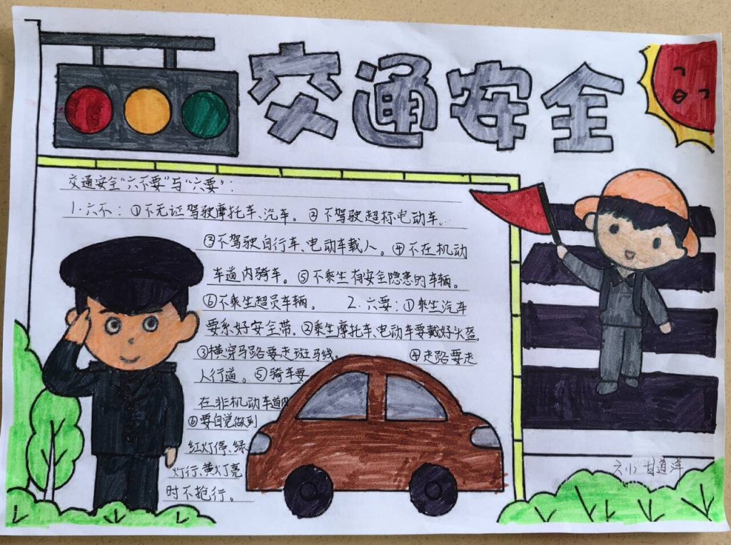 ~ 四至六年级的同学们还利用空闲时间,以“交通安全”为主题,自行收集资料,精心设计版面,用手中的彩笔制作出最美的手抄报。通过此次手抄报的制作充分调动了学生的绘画积极性和对交通法规认知的程度。