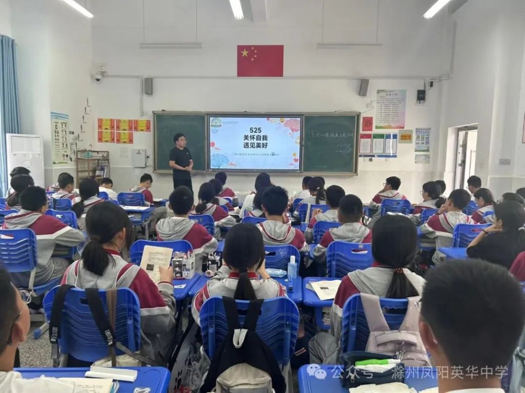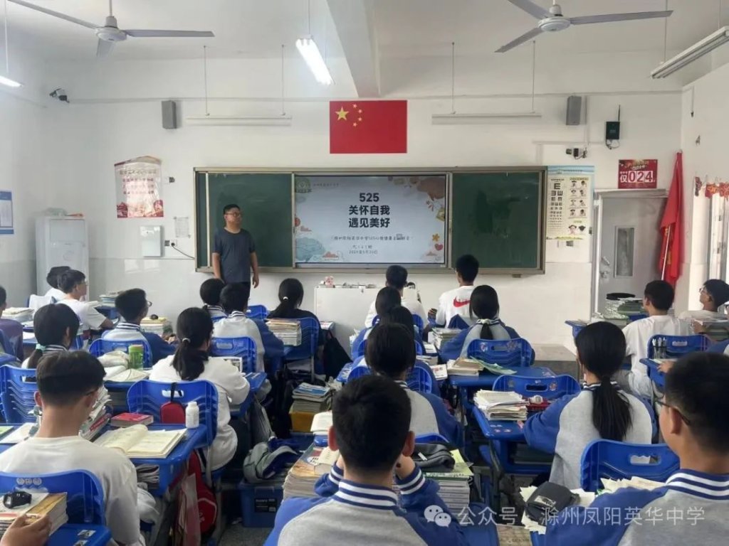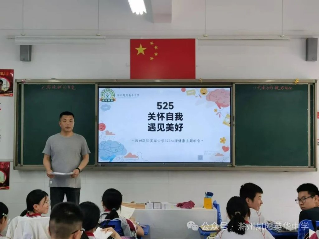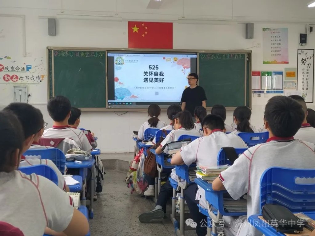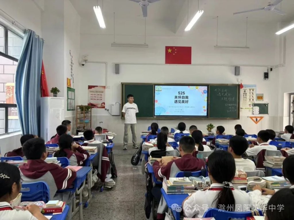 ~ 近日,教育部印发《关于开展首个全国学生心理健康宣传教育月活动的通知》,决定在2024年5月以“全社会都行动起来,共促学生心理健康”为主题开展首个宣传教育月活动。旨在通过形式多样的宣传教育活动,营造积极关心关注、支持参与学生心理健康教育的良好社会氛围,提升师生和家长心理健康知识水平和素养,推动学生心理健康工作提质增效,促进学生身心健康发展。为了全面落实五育并举促进心理健康理念,开展富有针对性的心理健康教育,5月20日,滁州凤阳英华中学召开心理健康主题班会。