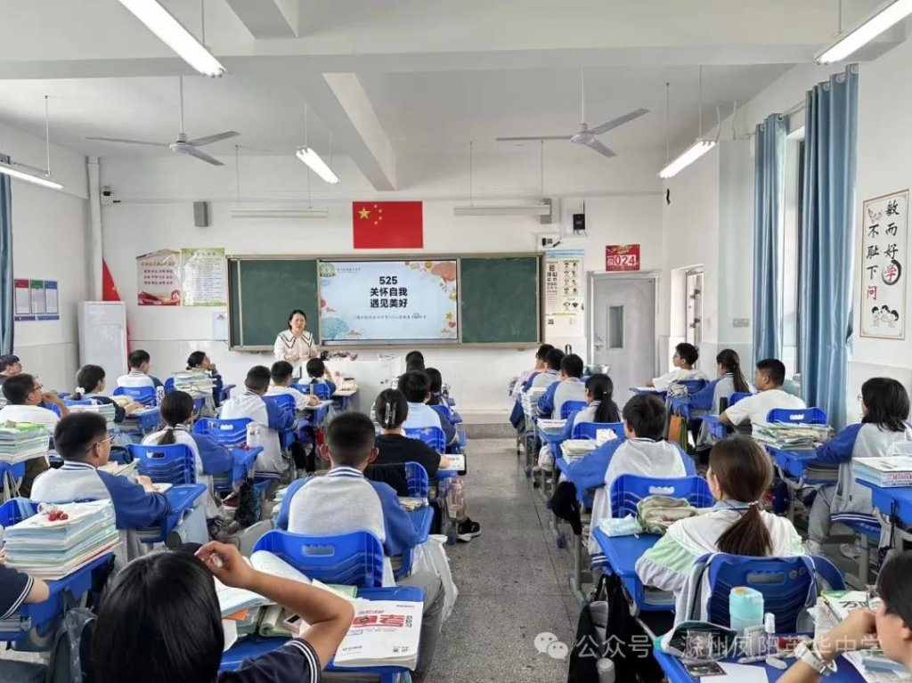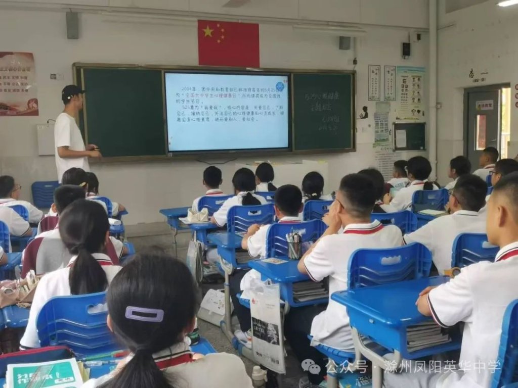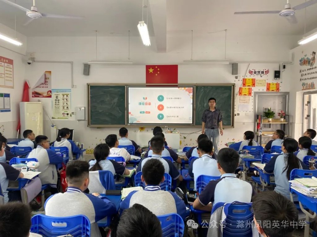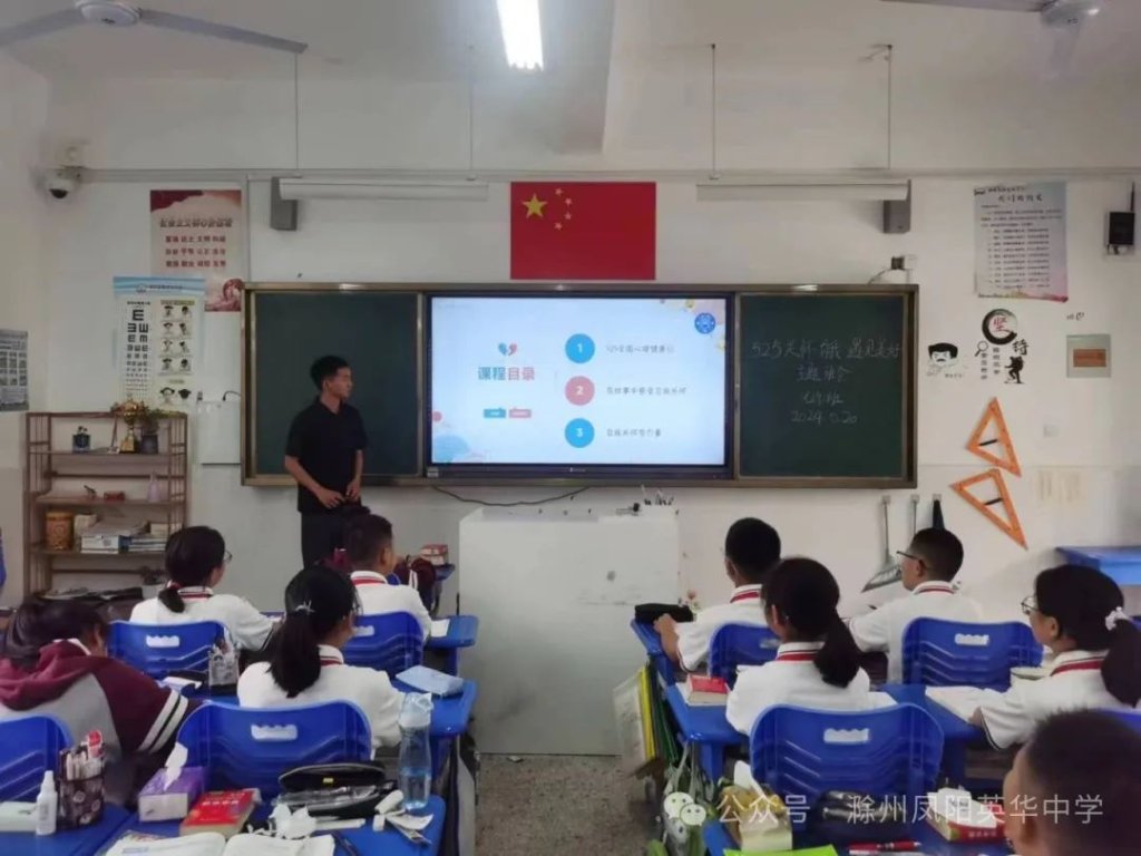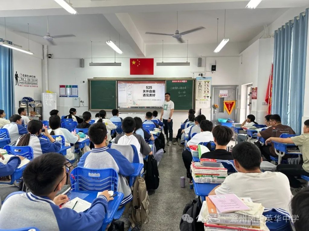 ~ 近日,教育部印发《关于开展首个全国学生心理健康宣传教育月活动的通知》,决定在2024年5月以“全社会都行动起来,共促学生心理健康”为主题开展首个宣传教育月活动。旨在通过形式多样的宣传教育活动,营造积极关心关注、支持参与学生心理健康教育的良好社会氛围,提升师生和家长心理健康知识水平和素养,推动学生心理健康工作提质增效,促进学生身心健康发展。为了全面落实五育并举促进心理健康理念,开展富有针对性的心理健康教育,5月20日,滁州凤阳英华中学召开心理健康主题班会。