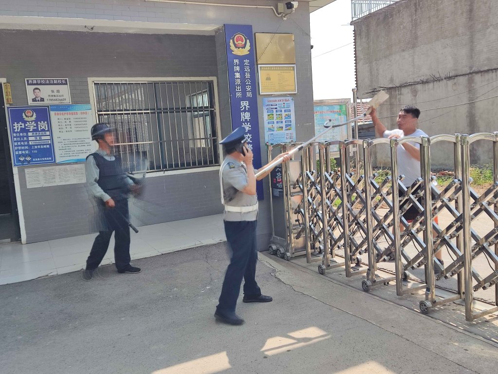 ~ 为增强师生的反恐防暴意识,提高应对突发事件的能力,5月24日,定远县界牌学校联合界牌集镇派出所开展了一场紧张有序的防恐防暴演练。