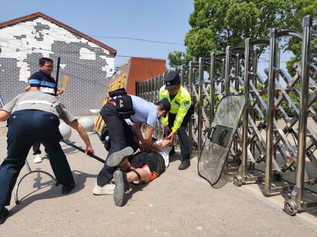 ~ 派出所接到报警后,迅速组织警力赶到现场。民警们与保安人员协同作战,利用防暴器械将“可疑人员”成功制服,确保了师生的安全。