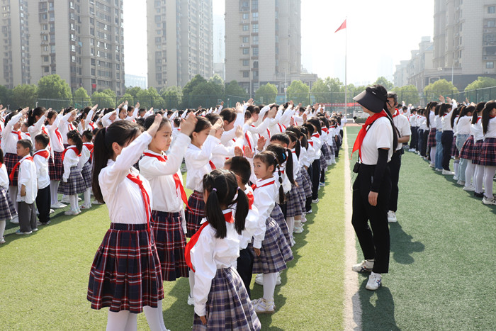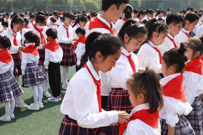 ~ 队旗飘飘,领巾飞扬,星星火炬传递着一代又一代少年的梦想,红领巾点燃一代又一代少年的希望。相信所有少先队员们一定能紧握红色接力棒,用实际行动为胸前鲜艳的红领巾增添光彩,争做新时代的好少年。 (阚亚茹 报道)