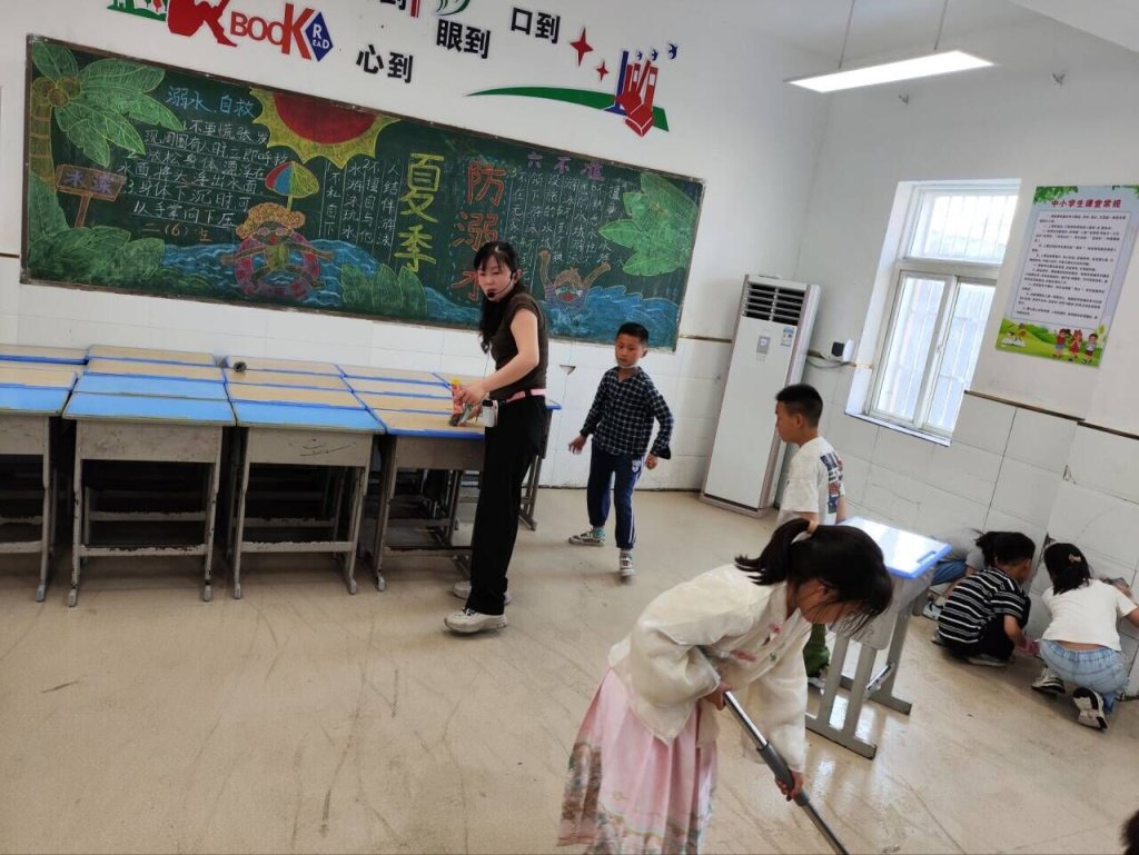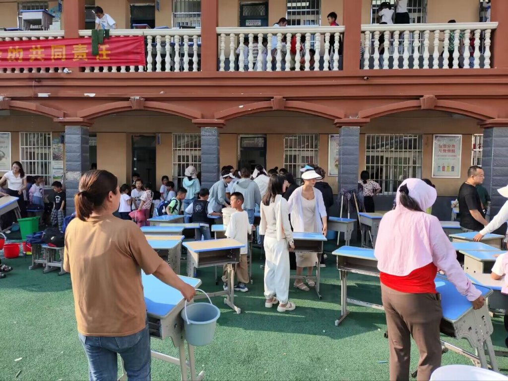 ~ 活动中,家长和孩子们分工合作,有的负责擦洗窗户,有的负责清扫地面,还有的负责整理课桌。各班班主任教师也不甘示弱,他们带领学生一起清理教室、操场上的杂物。整个校园充满了欢声笑语,大家干得热火朝天。