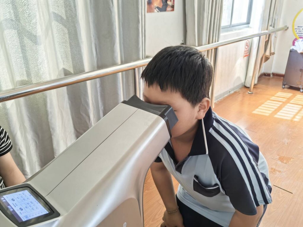 ~ 检测现场,各班班主任带领学生进入检测场地,秩序井然。检测人员使用专业仪器设备为学生仔细做视力检测,根据学生年龄和视力水平进行诊断,并详细做好记录。视力检测结束后,各项数据将及时更新到学生视力健康电子档案中,通过扫描二维码,学生和家长可查询检查结果。