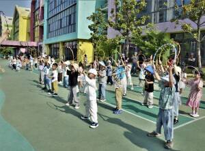 ~ 随着早操音乐的响起,孩子们个个精神饱满,举手投足间散发着阳光、快乐的气息。欢快愉悦的神情感染着每一位家长。