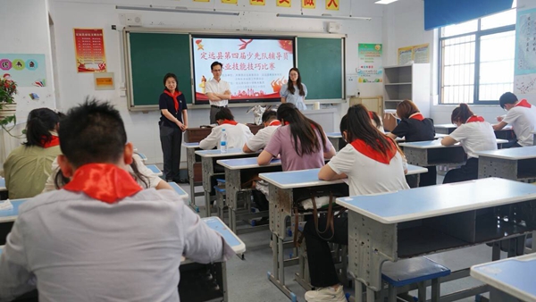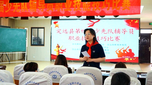 ~ 为认真落实《中共中央关于全面加强新时代少先队工作的意见》和省、市、县实施意见,引导和鼓励广大少先队辅导员不断创新进取,努力提高政治素质和专业水平,推进少先队活动课程体系建设,5月24日,由共青团定远县委员会、定远县教育体育局、定远县少先队工作委员会主办,定远县实验小学教育集团承办的第四届少先队辅导员职业技能技巧大赛在实验小学教育集团经开区校区报告厅成功举办。团县委副书记张杨、定远县少先队总辅导员雍敏、实验小学教育集团党总支书记陈恩源出席本次比赛活动。