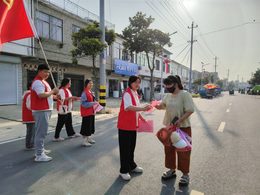 ~ 5月份是第四个民法典宣传月。为普及民法典知识,提高群众法治意识,5月25日,定远县三和学校团委组织志愿者面向群众开展民法典宣传活动,推动民法典走进群众心里,“典”亮美好生活。