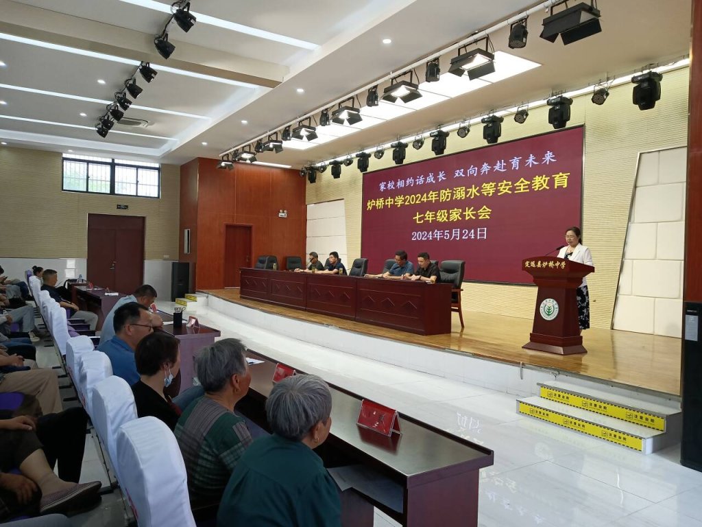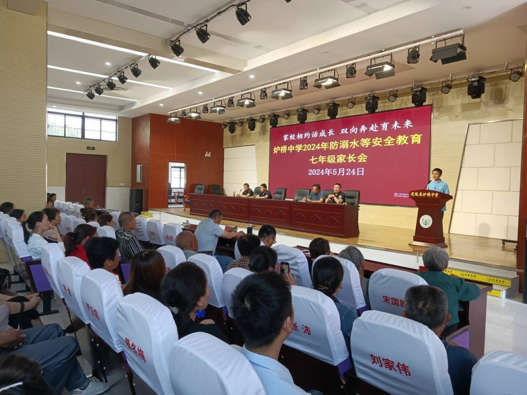 ~ 为进一步加强家校合作,提高广大师生家长的安全防范意识,助力孩子健康快乐成长,5月24日下午,定远县炉桥中学在学校报告厅召开了七年级防溺水等安全教育家长会,学校领导、班主任及七年级全体学生家长参加了会议,本次会议由校团委负责任人主持。
