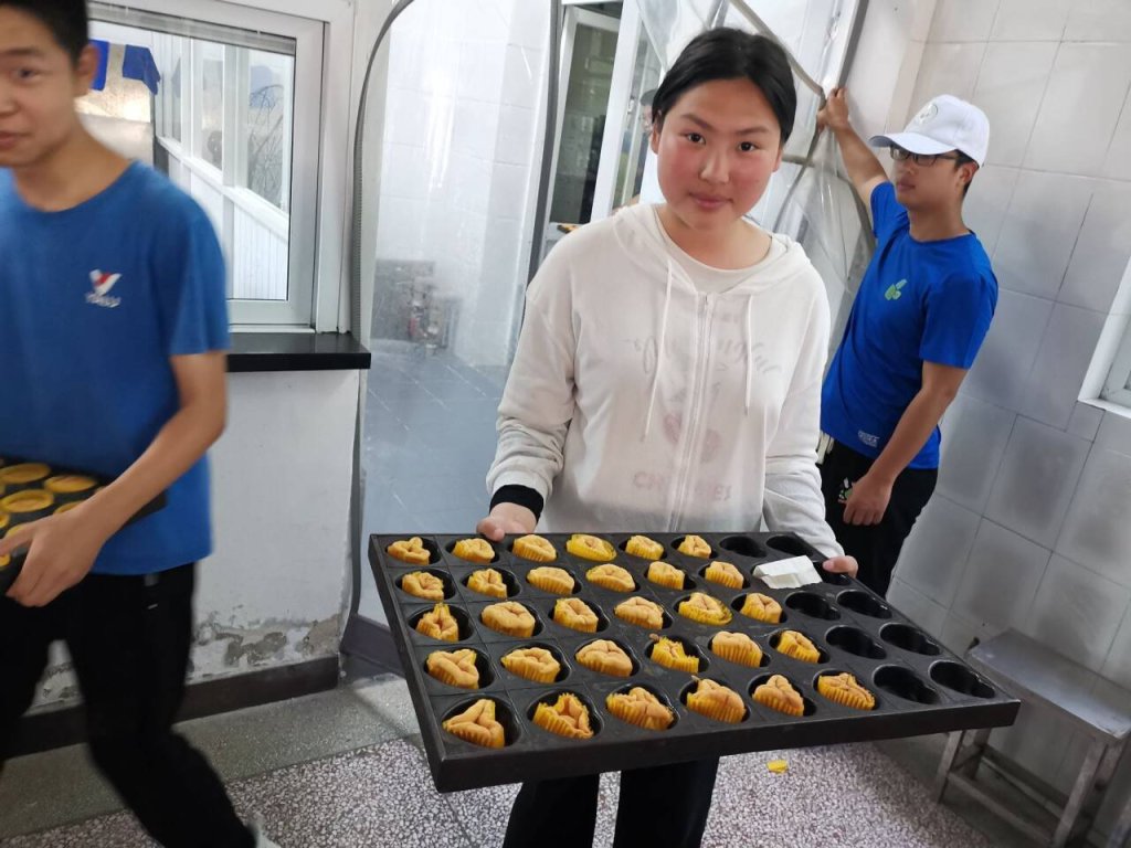 烘焙实践,乐享快乐。专业烘焙老师首先为队员们讲解和示范蛋糕制作,队员们仔细观察并动手操作,随着蛋清分离、加入面粉白糖、搅拌过筛,各种造型的蛋糕雏形就呈现在眼前。当打开烤箱那一刻,欢呼声响彻了整个现场,空气中弥漫着蛋糕的香气和幸福的味道。