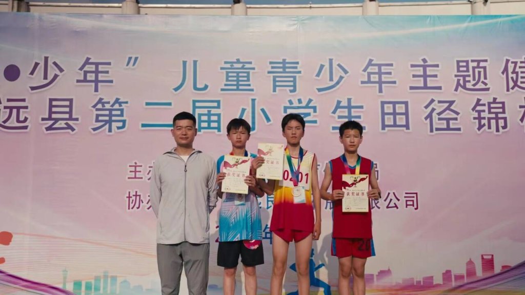 ~ 比赛中,该校选手沉着应战、奋勇争先。跑道上,同学们全力以赴,不断向终点发起冲击,完成超越。最终,该校获得定远县第二届小学生田径锦标赛“团体二等奖”。其中六3班的沈武阳同学男子立定三级跳冠军并打破县纪录,并在男子100米获得第三名。六7班的蒋宇杰同学获得男子掷垒球冠军并打破县纪录。六6班的孙家欣同学获得女子跪投实心球亚军,五9班的王彤彤获得女子200米第三名和女子400第三名,殷傲男子跳高第三名。