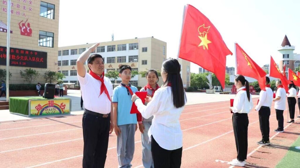 ~ “我是一名光荣的少先队员啦!”一群孩子骄傲的欢呼着。5月28日上午,定远县花园湖小学举行2024年首批少先队员入队仪式,激励广大少年儿童争当新时代好少年,在星星火炬的旗帜下,勤奋学习,快乐生活。