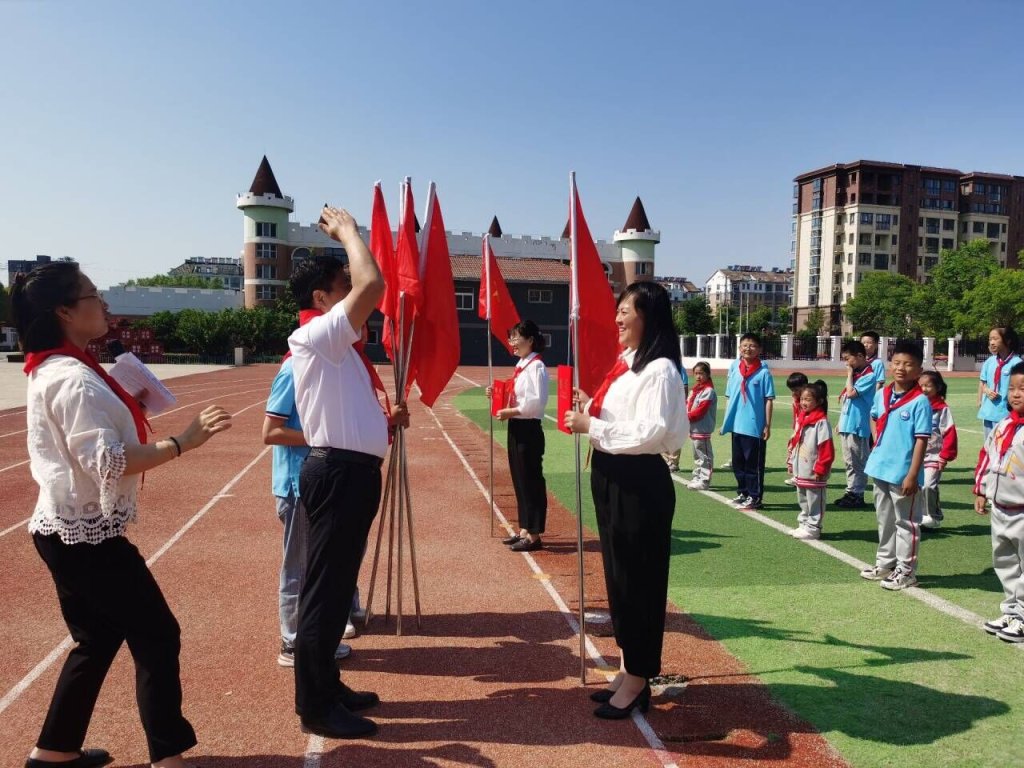 ~ 花园湖小学党支部书记、校长冯军熙为中队辅导员授中队旗,颁发聘书。辅导员们接过旗帜和聘书,也接过了一份责任和担当。