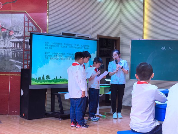~ 第二节课是由永乐小学的林纬纬老师执教的四年级《破风》。林老师围绕“破风”这一意象来探讨挫折与成长的关系。课堂开始,林老师用一个有趣的游戏——雨点变奏曲,激发了学生的学习兴趣和课堂参与度。后面的环节层层递进,以分组方式进行盲袋讨论与总结,案例分析与交流,通过两个贴近学生生活、需要自助和求助的例子,引导学生在任务指引下进行同伴互助交流,结合自身经历就抗挫经验和心得以及少量的互助知识进行交流讨论,以积极情绪、成长型思维进行课堂架构,使学生敢于面对困境,积极勇敢地面对挫折,寻找解决问题的方法,进而提高学生应对挫折的能力。
