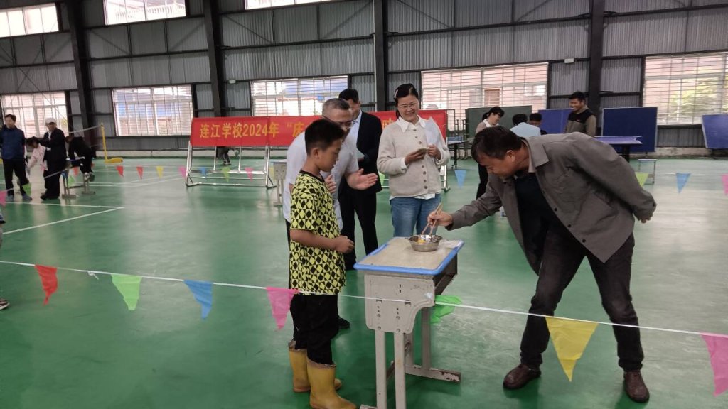 ~ 5月30日,定远县连江学校举行“迎六一”师生趣味运动会。 ~ 活动由该校团委、少先队等部门联合开展。比赛项目有投球入桶、夹乒乓球、拍球过障碍、跳绳、拔河等,采取师生混合组队接力…