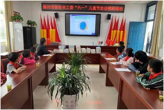 ~ 5月30日下午,在“六一”国际儿童节来临之际,滁州市机关事务管理处党组成员、副主任马健率队赴定远县红山学校开展走访慰问活动,定远县教体局关工委、定远县机关事务服务中心、拂晓乡党委政府、拂晓乡高塘社区等领导陪同。
