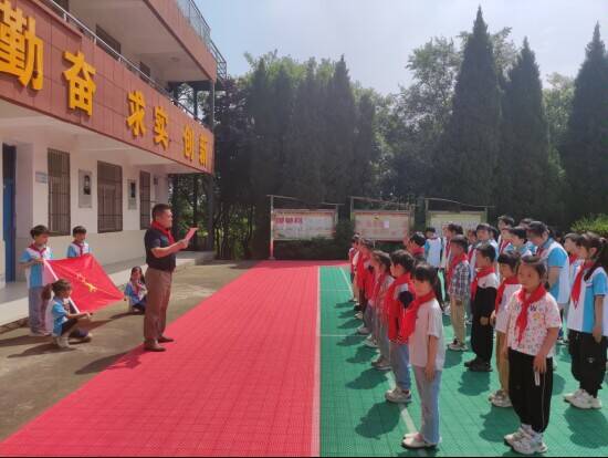 新队员们在队旗下庄严宣誓,他们紧握右拳,用稚嫩而坚定的声音许下为共产主义事业贡献力量的誓言。学校领导发表了热情洋溢的讲话,对新队员们表示祝贺,并鼓励他们在少先队组织中茁壮成长,努力成为优秀的少先队员。