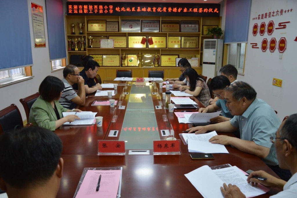 ~ 为深入贯彻落实《安徽省人民政府办公厅关于皖北地区基础教育优质资源扩容工程的实施意见》文件精神,5月31日上午,芜湖市解放西路小学与定远县职工子弟小学“皖北地区基础教育优质资源扩容工程签约仪式”在职工子弟小学顺利举行。