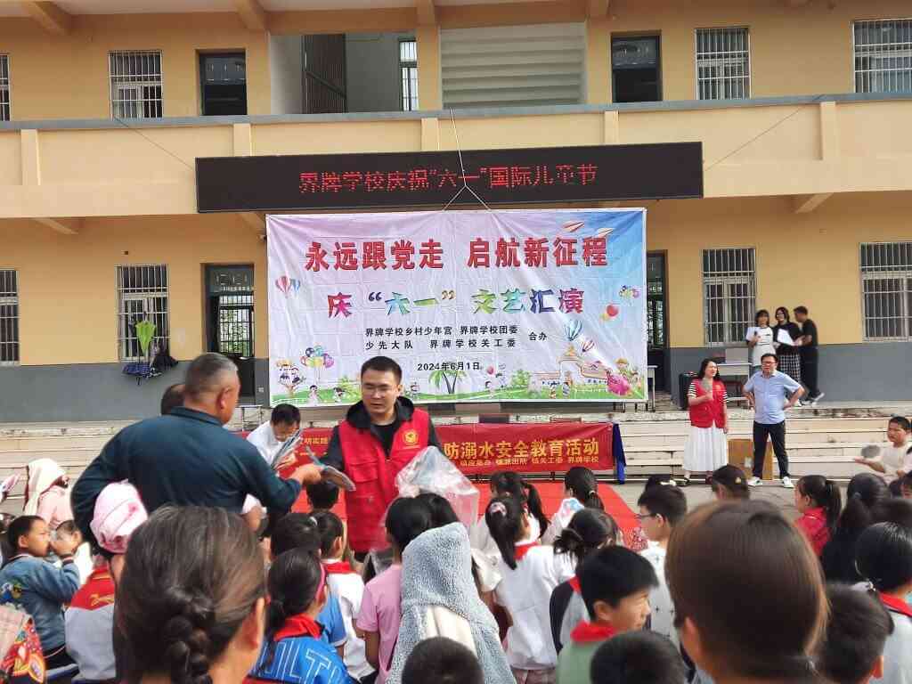 ~ 为进一步增强学生及其家长防溺水安全意识,防范溺水事故的发生,定远县界牌学校关工委联合界牌集镇新时代文明实践所、界牌派出所、界牌集镇关工委开展“庆六一•安全‘童’行”防溺水安全教育宣讲活动。活动利用学校“六一”文艺汇演时学生及家长较为集中的机会于5月31日上午开展,现场有200多名学生及其家长参与。