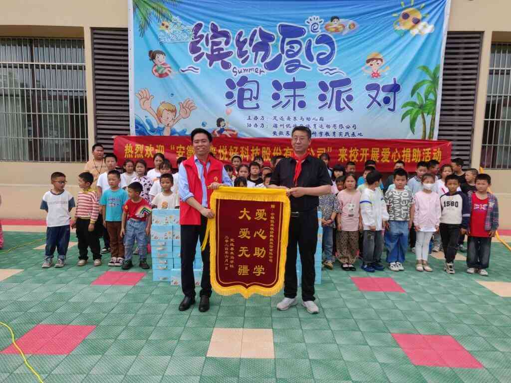 ~ 活动现场,安徽悦来悦好科技股份有限公司为同学们准备了学习大礼包,现场发放在同学们自觉排队中有序进行。孩子们接过的不仅仅是爱心物资,更是满满的关爱,他们微笑着说感谢,眼神中充满了努力学习的信念。