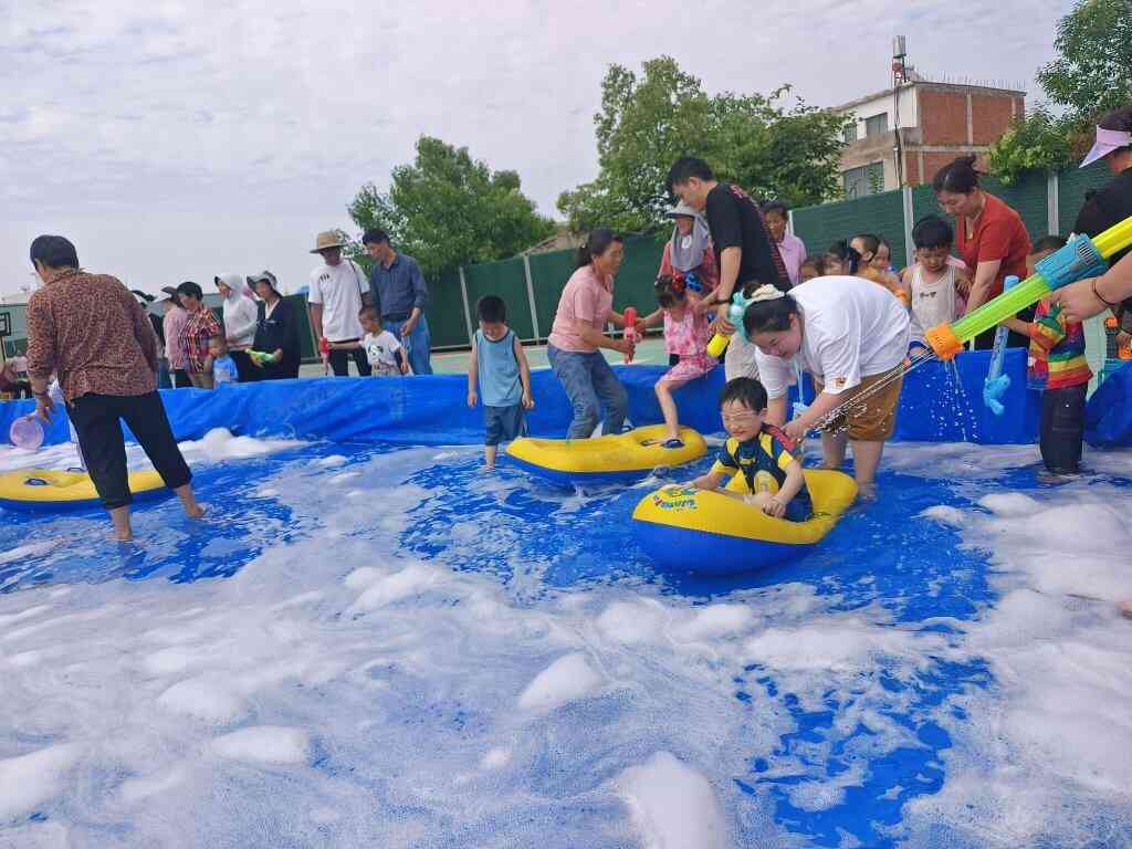 ~ 下午,朱马学校幼儿园开展了泡沫之夏活动,在家长和孩子们热情的欢呼声中,活动正式开始。小朋友们和家长带着自己的“武器”迫不及待地进入到水池中,水枪、水盆……各种玩水道具齐上阵,惊险刺激的戏水大战瞬间开启。你泼我,我泼你,一瞬间水花四起,欢笑声此彼起伏,水池顿时成了欢乐的海洋。激流勇进和泡沫大战环节,将活动的气氛推向高潮,孩子们不时发出阵阵尖叫声。雪白绵密地泡沫犹如云朵从天而降,落在孩子们的身上,覆盖了水池,孩子们仿佛置身在童话王国,感受生活的欢乐!活动结束,家长们为宝贝换上干净衣服,喝着幼儿园准备的红糖姜茶,领着属于自己的六一礼物,开心愉快地和家人回家。