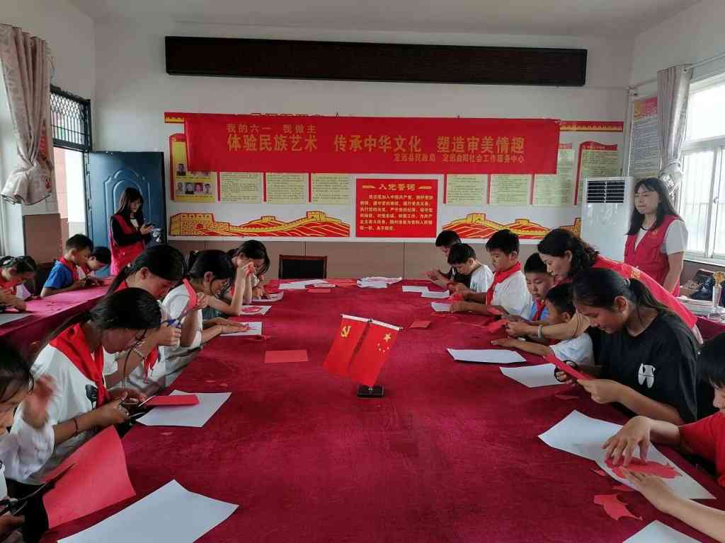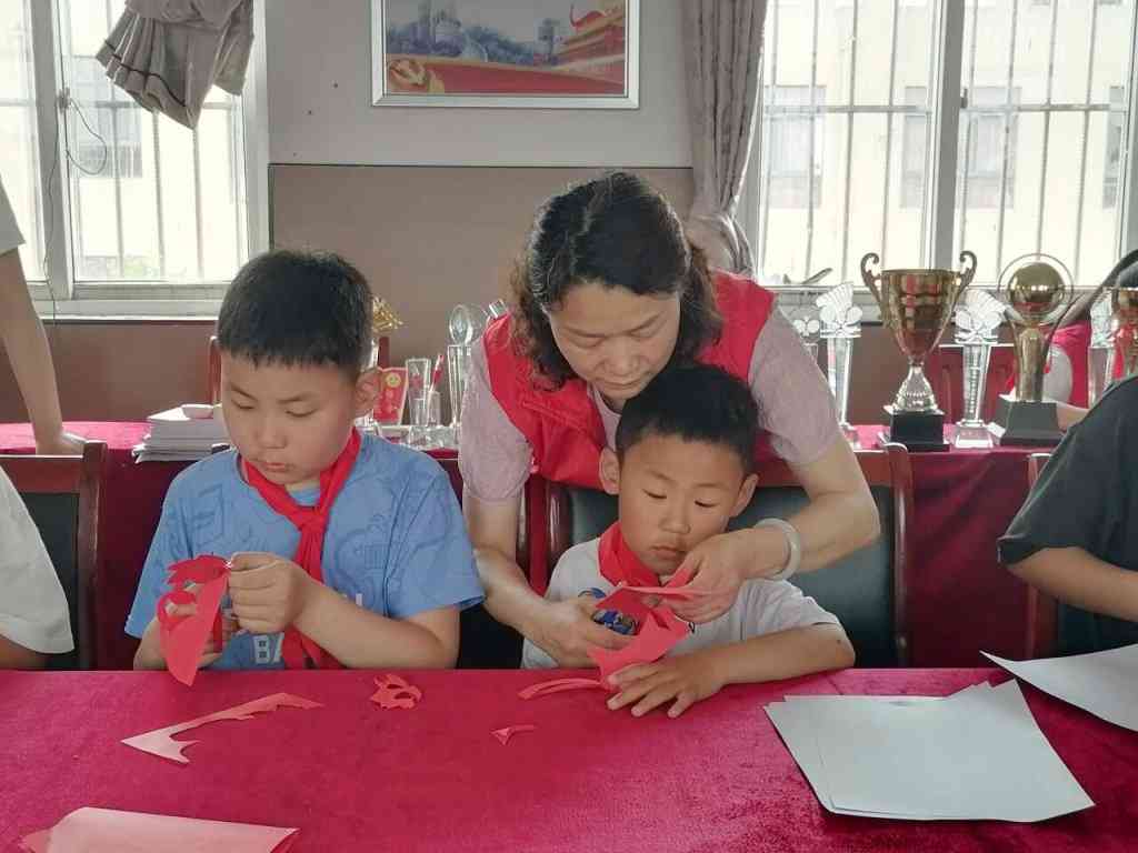 ~ 活动中民政局副局长孙恬对孩子们说,要坚定生活的信心,勇敢面对困难与挫折,努力学习,积极生活,健康成长。然后老师带领孩子们开展了剪纸、团建活动,让孩子在活动中体验民族艺术,传承中华文化。最后为孩子们送上了蛋糕、水果,还有书包。孩子们脸上洋溢着幸福灿烂的微笑。